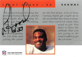 Former Miami Hurricane Lance Leggett was an undrafted Free Agent signed by the Browns in 2008. He never played for them but I just picked up two of his autographed cards. They are added to the one regular Leggett card that I owned before.